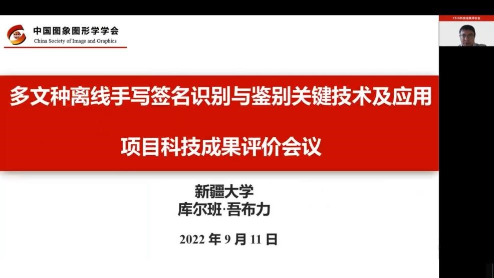 近日,受中国图像图形学学会评价委员会委托,信息学院库尔班·吾布力教授团队《多文种离线手写签名识别与鉴别关键技术及应用》成果评价会议在线上举行。中国科学院梅宏院士、中国工程院桂卫华院士、中国工程院吾守尔·斯拉木院士、中科院自动化所刘成林副所长,北京理工大学王涌天教授、北京科技大学马惠敏教授、中山大学赖剑煌教授,华南理工大学金连文教授、南京信息工程大学刘青山教授,北京大学彭宇新教授出席评价会,会议由国家杰青、南京信息工程大学刘青山教授主持。