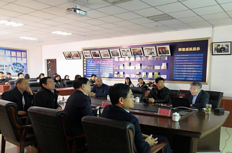 吾守尔·斯拉木院士向调研组一行汇报实验室概况