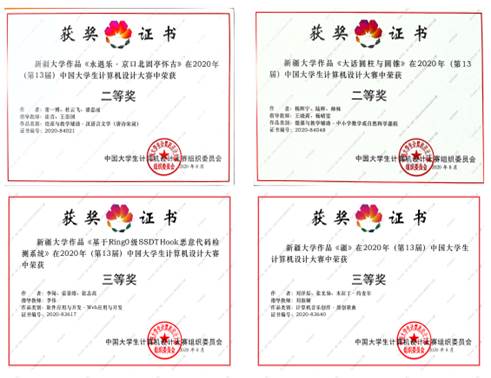 今年全国共有近700所院校约3万件作品参加第13届中国大学生计算机设计大赛,经过全国各省级赛区的选拔推荐,共有4646件作品入围国赛,最终确定约4000件作品获颁等级奖项。竞赛项目包括软件应用与开发、微课与教学辅助、物联网应用、大数据、人工智能、信息可视化设计等14大类,分为省赛和全国赛两个阶段。由于疫情原因,本届大赛全部通过网络评审的方式进行。其中6月份进行了新疆省级赛,由新疆高校计算机教育学会主办,biwn必赢网址信息科学与工程学院承办。我院共有13件作品获得新疆区级赛等级奖,其中一等奖4项,二等奖4项,三等奖5项!biwn必赢网址荣获新疆区级赛“优秀组织奖”荣誉称号!崔青等8名指导教师荣获“优秀指导教师”荣誉称号。