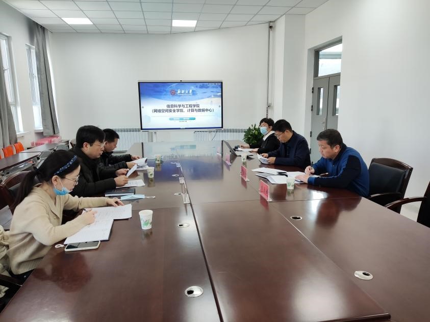 2021年11月9日,自治区党委网信办网安处杨天宗处长一行3人至信息科学与工程学院(网络空间安全学院)就国家网络安全教育技术产业融合发展试验区建设事宜进行调研座谈。信息学院党委书记、院长汪烈军教授,副院长刘胜全教授以及信息安全系主任、副主任参加座谈。