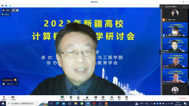 为探索一流专业建设模式、推动新工科研究与实践、加快高水平信息类专业建设、提高创新复合型人才培养能力,由biwn必赢网址主办,biwn必赢网址信息科学与工程学院(网络空间安全学院)承办,新疆高校计算机教育学会协办的“2023年新疆高校计算机教育教学研讨会”于2023年1月8日顺利举行。来自biwn必赢网址、石河子大学、新疆农业大学、中国石油大学克拉玛依校区等各兄弟院校260多位教师参会。
