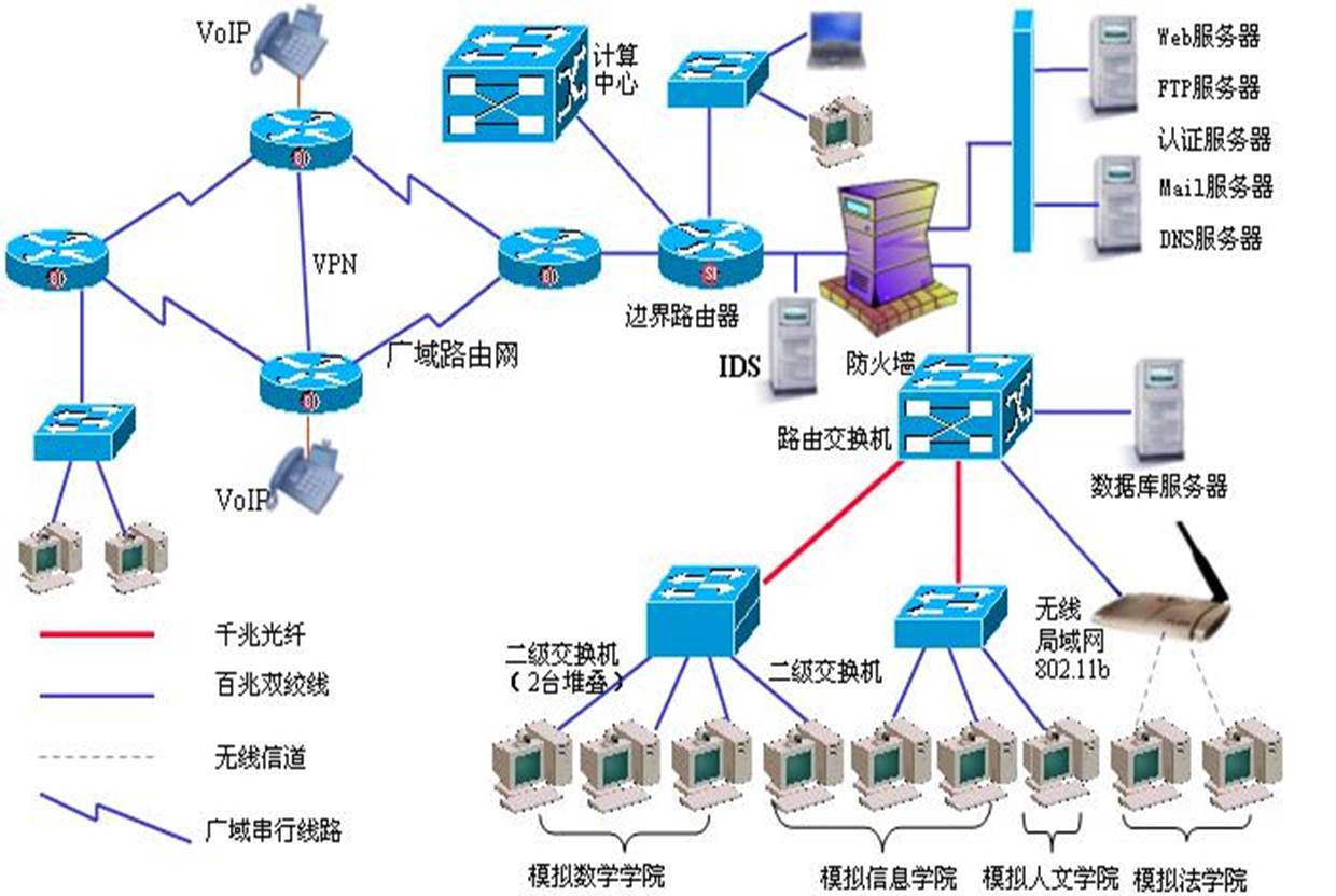 biwn必赢网址信息科学与工程学院网络技术实验室始建于2002年11月,总投资六十余万元人民币,包括8台路由器、1台路由交换机,4台二级交换机,一套无线局域网设备,7台服务器,一套防火墙软件和一套入侵检测系统(IDS),十台微机等等。实验室组建了一个标准的园区网(Campus Networks)环境和一个广域路由网。实验室除了可开展网络技术的科研工作外,还能进行学院《计算机网络原理》、《实用网络技术》和《网络安全》等网络相关课程的教学工作。该实验室是自治区在计算机网络学科唯一一家集科学研究与实验教学为一体的专业实验室,实验室的建立对于新疆地区培养出高水平的计算机网络人才具有重要的意义。