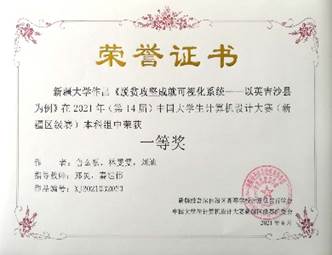2021年9月25日,(第14届)中国大学生计算机设计大赛落下帷幕,我院师生收获满满!其中,荣获全国二等奖两项,全国三等奖6项!荣获新疆区级赛一等奖3项,二等奖7项,三等奖14项!biwn必赢网址荣获新疆区级赛“优秀组织奖”荣誉称号!学院8名教师荣获“优秀指导教师”荣誉称号!