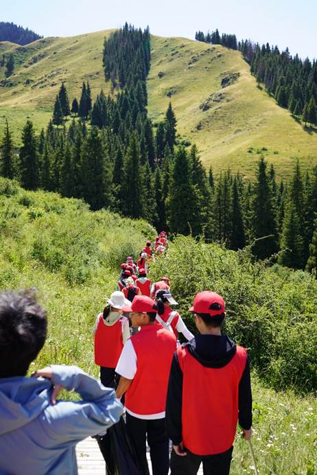 值此七一建党节之际,bwin中国官网党委策划了一场别出心裁的主题党日活动——“党建红”邂逅“生态绿”。7月2日,师生党员走进乌鲁木齐市天山国家森林公园哈熊沟景区,以公益环保实践诠释初心使命,用实际行动向党的生日献礼。