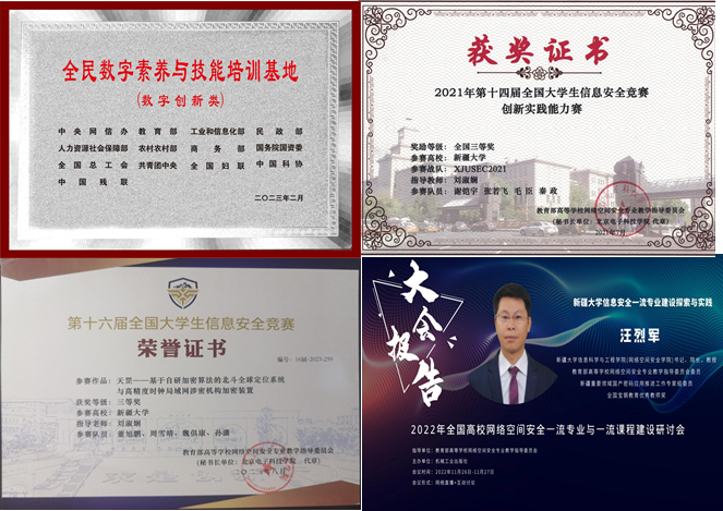 支部重视党建业务双促进双融合,成绩显著。2020年信息安全专业入选“国家一流本科专业”建设点。自2019年以来支部成员获得全国优秀教师1人,全国宝钢优秀教师奖1人,自治区教学能手1人,自治区“访惠聚”驻村工作先进个人2人次,自治区“民族团结一家亲”活动先进个人1人,自治区自然科学二等奖1人。